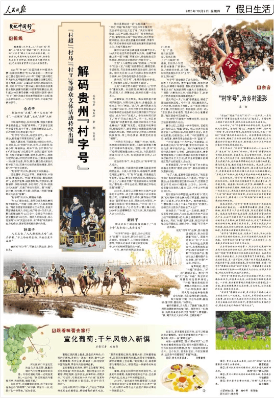 10月2日,《人民日报》刊发文章《“村超”“村马”“村T”等持续出圈,解码贵州“村字号”》,报道了贵州打造的“村BA”“村超”等“村字号”群众文体活动,已经悄然重塑贵州乡村的发展图景。具体内容如下: