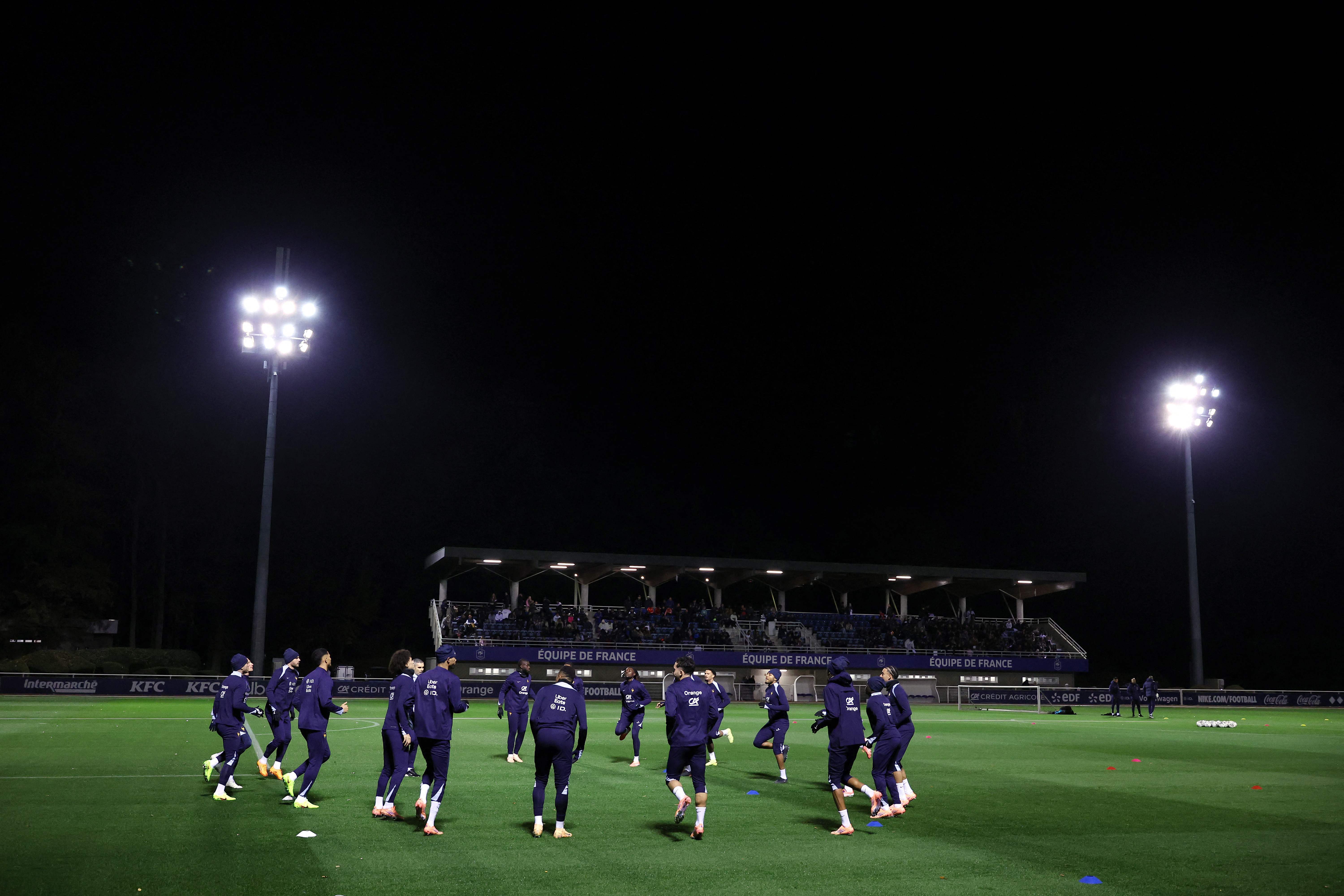 足彩,法国国家足球队在巴黎南部的克莱尔方丹-昂伊夫林基地进行赛前训练,备战13日与乌克兰队的2026世界杯欧洲区预选赛小组赛。