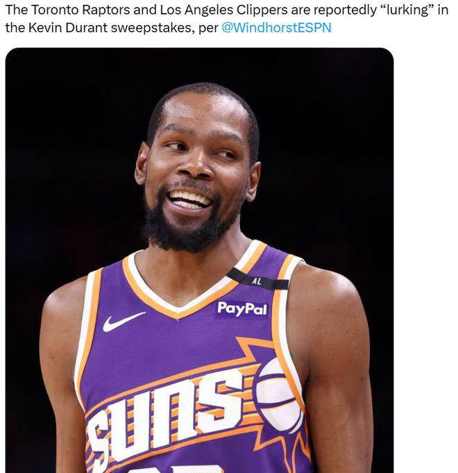 根据美国媒体报道,多伦多猛龙和洛杉矶快船正在秘密觊觎凯文·杜兰特。