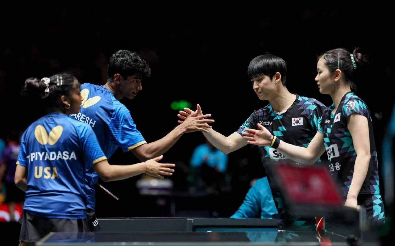 混合团体世界杯赛铜牌争夺战,德国队八比七险胜韩国队,获得了季军。在第一盘的混双比赛朴康贤和金娜英组合一比二不敌邱党/考夫蔓组合。邱党台内球控制确实比较出色,给搭档创造了很好的抢攻机会,前两局分别11比5和11比7拿下,他的战术变化限制了韩国组合。朴康贤组合第三局11比8扳回一局,但是已经很难保持大比分领先了。