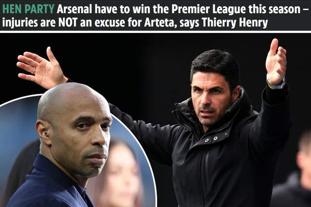 英国媒体太阳报报道,阿森纳名宿亨利表示,阿森纳本赛季必须赢得英超冠军;对于阿尔特塔来说,伤病绝对不是借口。