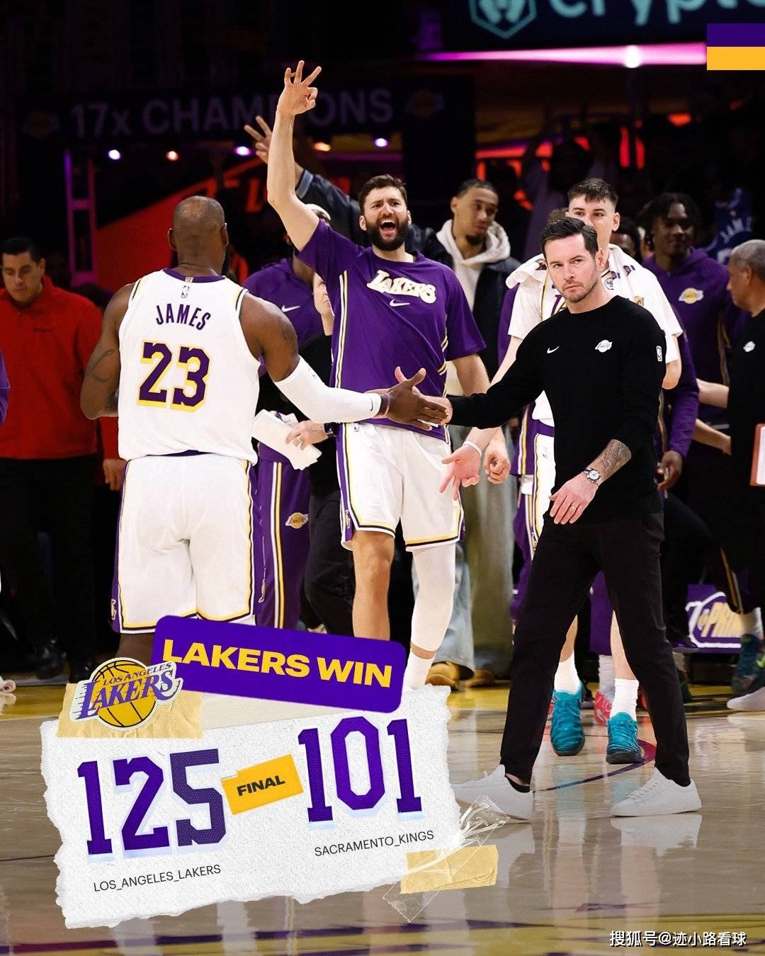 北京时间12月29日湖人主场对阵国王,全场比赛结束湖人以125-101成功击败了国王。本场比赛对于湖人来说是相当的重要,首先湖人已经是遭遇了3连败,其次雷迪克也已经是公开批评球员表现不佳,加上湖人已经是掉到了西部第五的位置,所以现在湖人是必须赢得比赛胜利,而第一节比赛湖人就展现出侵略性,等到第二节比赛的时候湖人更是开始慢慢拉开比分,下半场比赛湖人更是没有出现崩盘的情况,他们反而是在比赛中的领先优势越来越大,最终湖人是大胜国王。