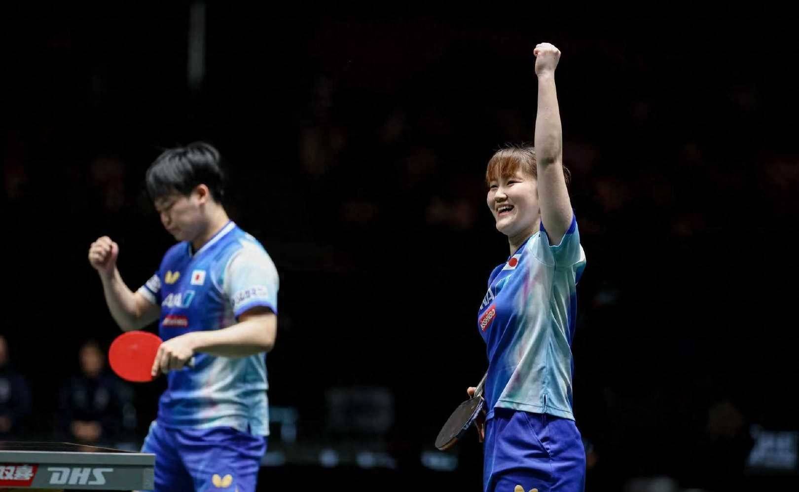 混合团体世界杯赛日本队对战德国队,在第一盘的混双比赛,松岛辉空和大藤沙月组合二比一击败了杜达和米特兰姆组合。松岛辉空组合前两局展现出了速度快攻的技术优势,分别11比7和11比9连胜两局。杜达组合11比6扳回一局,但是三局制的比赛在对手大比分领先的情况下,扳回一局也很难逆转比分了。